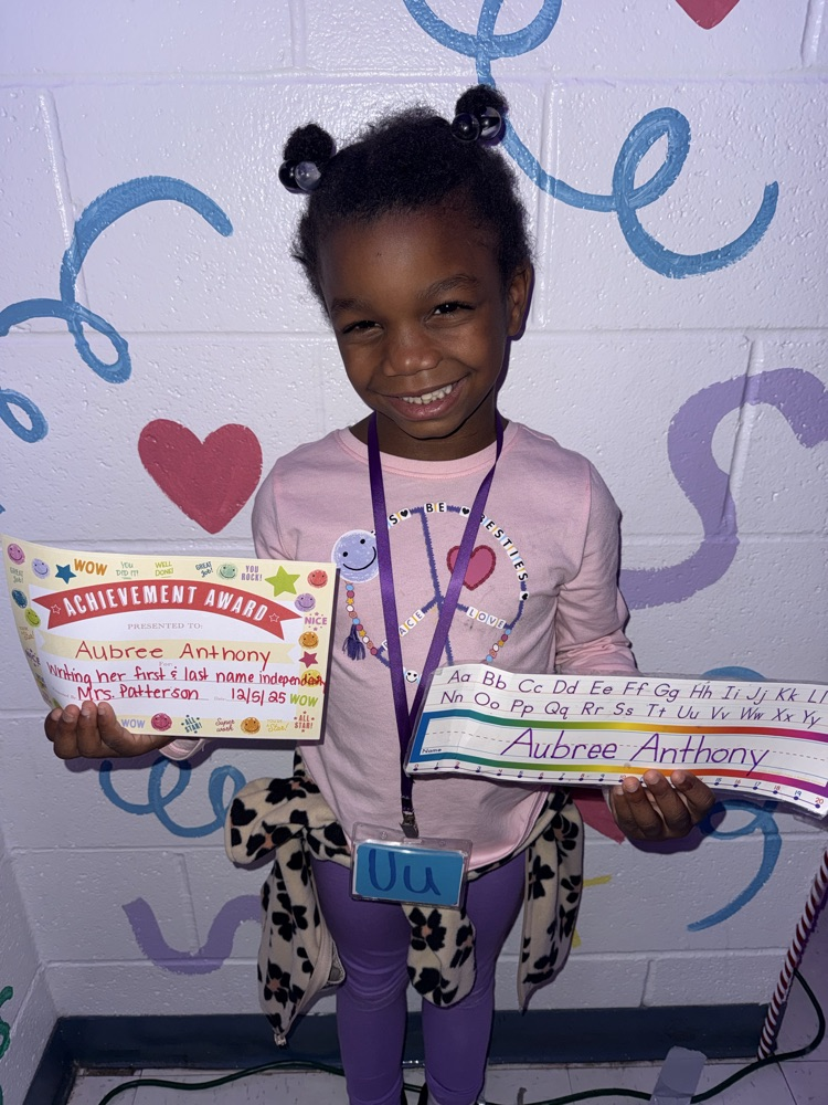 Aubree Anthony is the newest member of the "I can write my first and last name" kinder club!! She's been working so hard all year. She had a plan to be in the club before Christmas break and she made it!! I'm so proud of this girl! 💜Mrs. Patterson