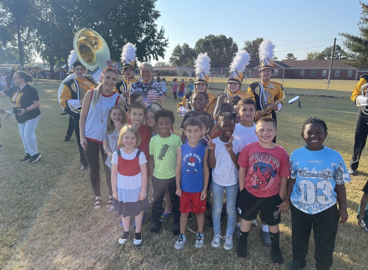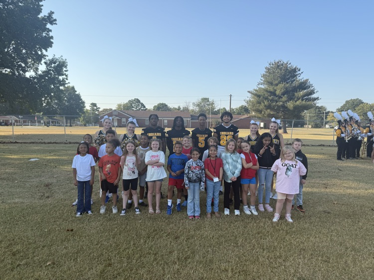 Mrs. French's class enjoyed celebrating at the Homecoming Kickoff Pep Rally! 🖤💛 Thank you to all the football players, cheerleaders, twirlers, and band members for making our day a great one!