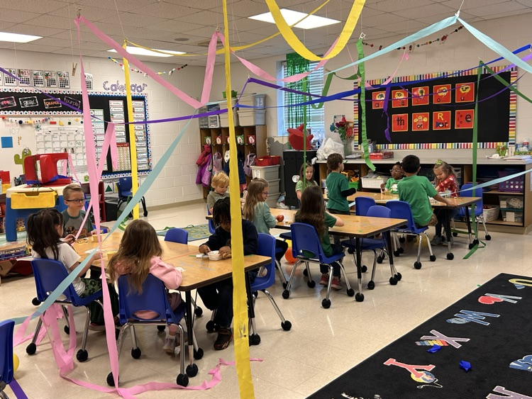 Mrs.Jayme's Kindergarten class had an unexpected "messy" guest today! ☘️
