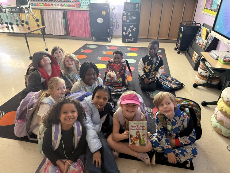 Hearing "one more chapter" never gets old!! Mrs. Patterson's class finished their 5th chapter book in ONE week. We missed Junie B.'s shenanigans! 📚💙