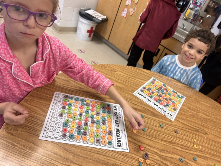 Mrs. Brandie's class learned to count coins this week and made 100th day necklaces. 💛🖤